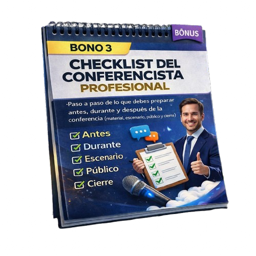 BONO 4 - CHECKLIST DEL CONFERENCISTA PROFESIONALPaso a paso de lo que debes preparar antes, durante y después de la conferencia (material, escenario, público y cierre).